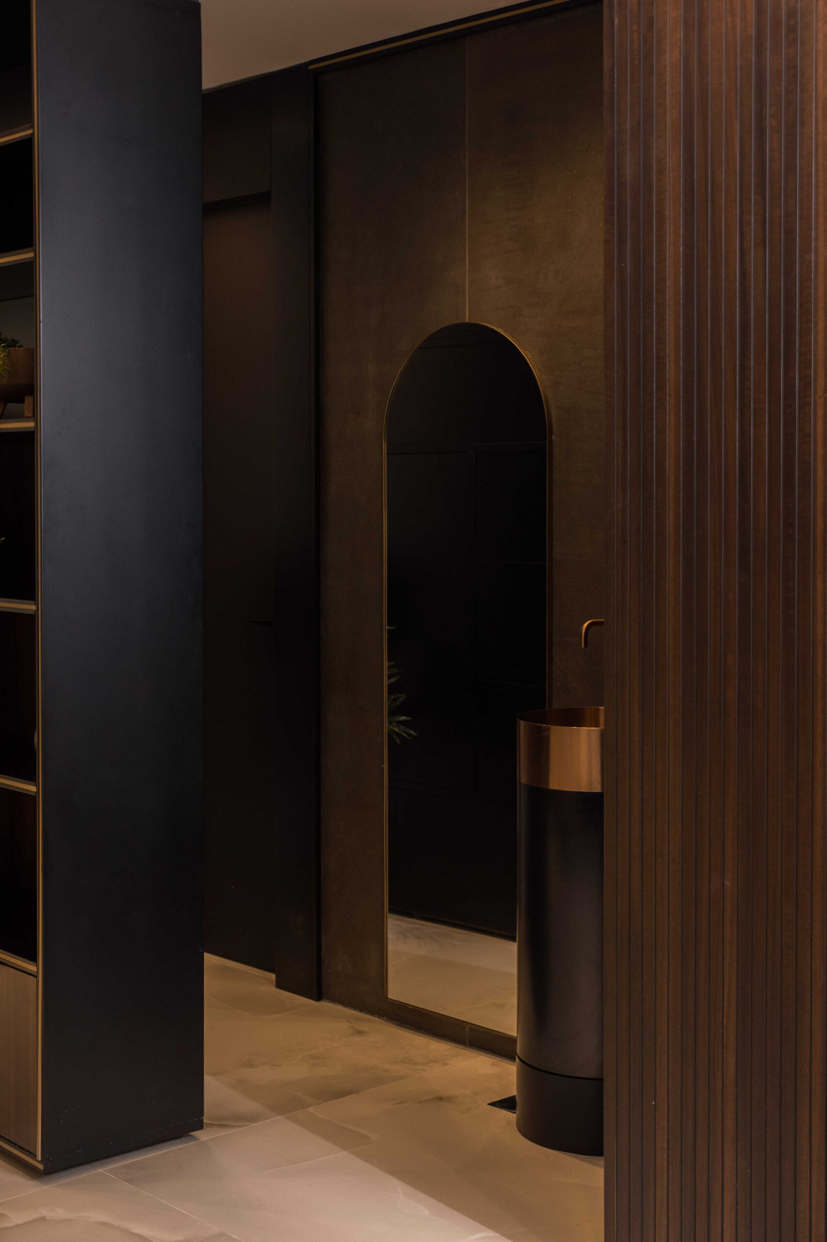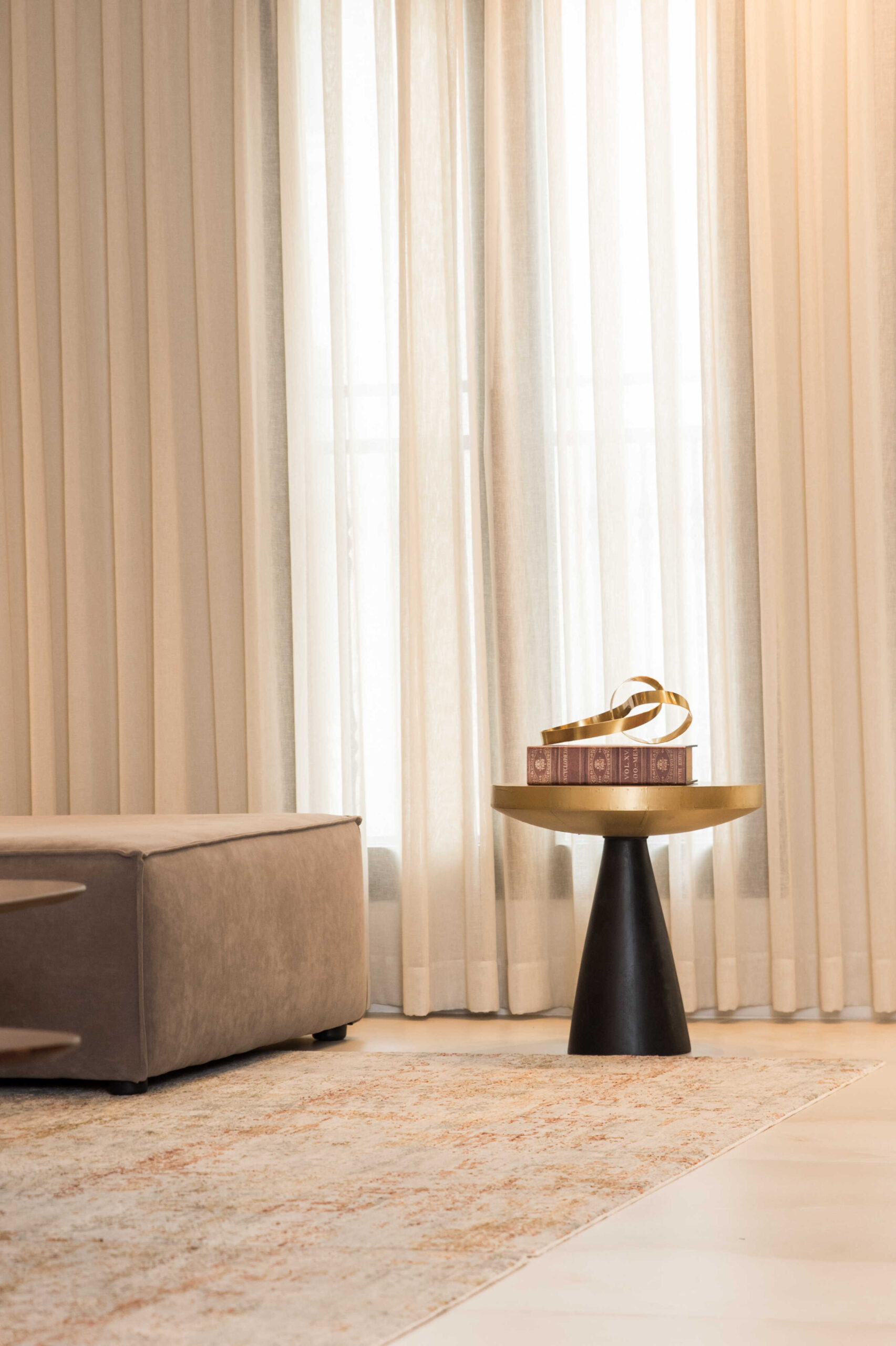דירה זו עוצבה לבקשתם של זוג הורים עם 4 ילדים הגרים בחו"ל ומגיעים כשלוש פעמים בממוצע בשנה לארץ ומחפשים חלופה לבית מלון הבקשה היתה לעצב את הדירה בסטייל של בית מלון – ביקשו עיצוב מוקפד ואלגנטי וקיבלו! הדירה תוכננה עם חלל אירוח מרווח מאוד, מטבח עם משטח אבן טבעית שנבחרה בקפידה בהתאמה מושלמת עם צבע הנחושת של ארונות המטבח, ספרייה עם טלוויזיה נסתרת ופינת נטילת ידיים מעוצבת נגישה לאורחים. בדירה עוצבו חיפויים מיוחדים ומקומות אחסון ייעודיים, כמו כן, תוכנן חדר עבודה באזור החלל הציבורי לטובת עבודה בעת הצורך. תוכנן חדר הורים מרווח עם חדר ארונות נסתר ומקלחת מפנקת ומרווחת. המרפסת בדירה פונה לחומות העיר העתיקה.